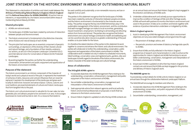 England’s Areas of Outstanding Natural Beauty and Historic England have today signed a joint statement outlining their ambition and intent to work together to conserve and enhance the historic and cultural environment of England’s 34 National Landscape.